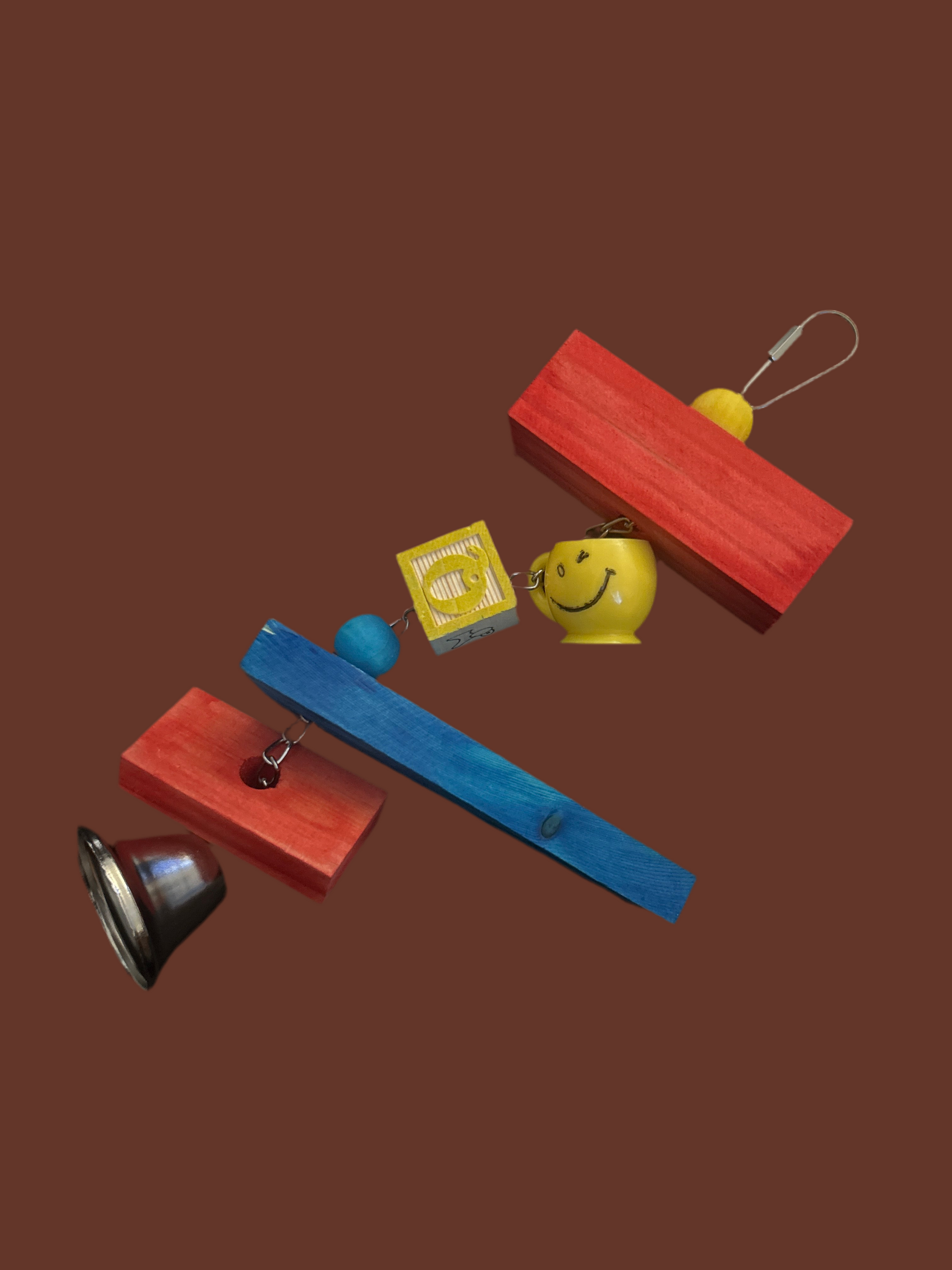 Variety of different colors & shape wood blocks With plastic smiley face and bell